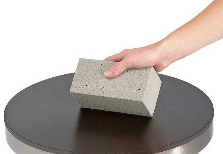 Pierre abrasive permettant d'enlever la croûte de cuisson sur les plaques usinées des crêpières.