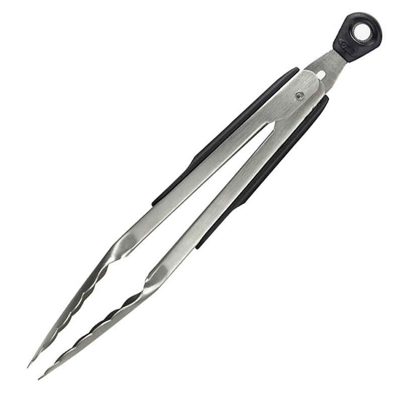 Pince de service avec corps et tête en acier inoxydable, robuste et durable. L'anneau de suspension en bout de l'ustensile sert également de système de verrouillage de la pince. Manche ergonomique avec encoche pour le pouce pour une prise en main confortable. Les extrémités de la pince en forme de coquille permettent de saisir délicatement les aliments. (idéal pour le poisson ou les légumes croquants)