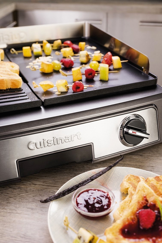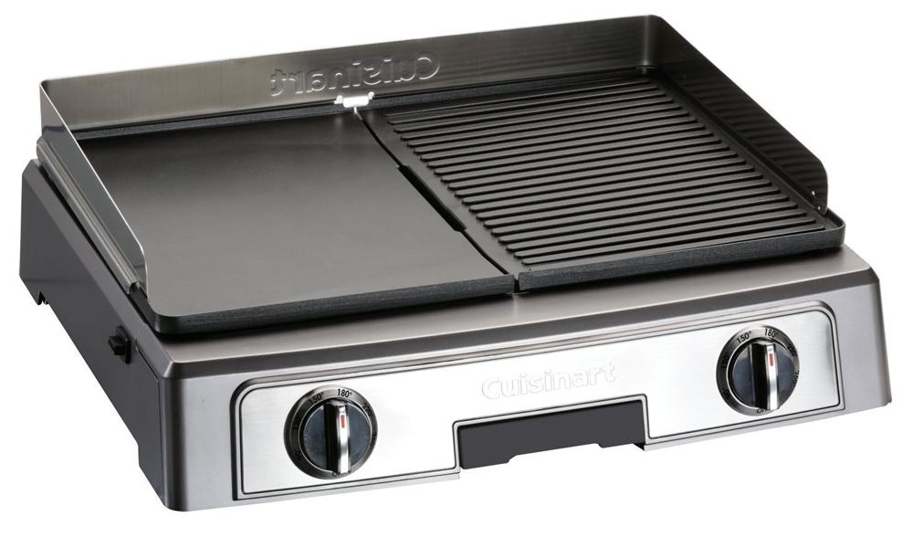 La Plancha barbecue Cuisinart PL50E permet cuire vos aliments au grill ou à la plancha suivant vos envies. L'appareil a été conçu pour vous simplifier la vie : plaques amovibles pour un nettoyage facile, 2 thermostats indépendants pour pratiquer la multi-cuisson, protection anti-projections....