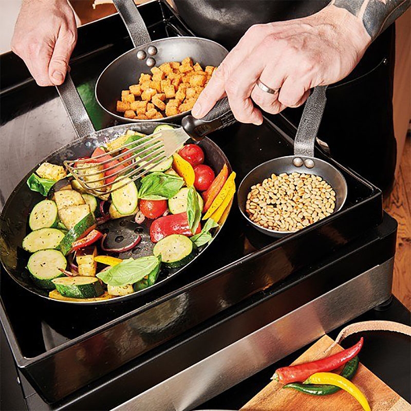 - Plaque de cuisson en fonte émaillée à hauts rebords garantie à vie.
