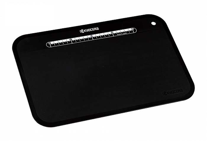 La Planche à Découper Flexible Kyocera a été spécialement conçue pour les couteaux céramique, elle n'abîme pas le fil des couteaux. Elle possède une règle graduée imprimée très pratique et se nettoie très facilement. Elle peut être suspendue grâce à un trou et résiste à la chaleur jusqu'à 100°C.