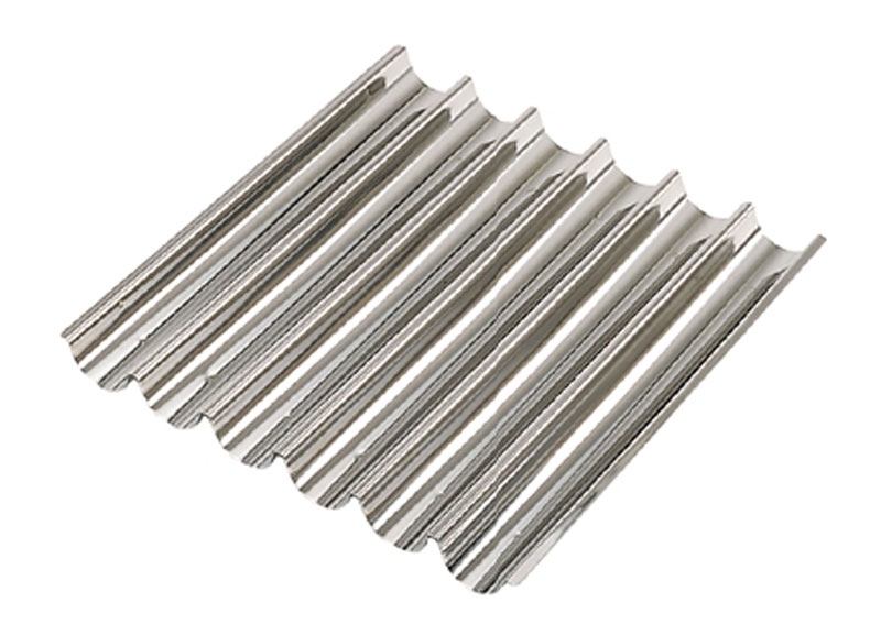 La plaque à tuile permet de réaliser facilement les tuiles et autres pâtisseries longues. Dimensions : 35 cm x 32 cm - 6 gouttières de largeur 42 mm. Va au four. Va au lave vaisselle.