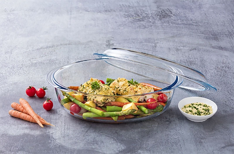 Le plat ovale Pyrex est en verre borosilicate extrêmement résistant à la chaleur comme au froid. Va au four, micro-ondes, congélateur, lave-vaisselle. Parfaitement sain pour cuisiner et conserver les aliments. Son épaisseur lui permet également d'être très résistant aux chocs mécaniques.