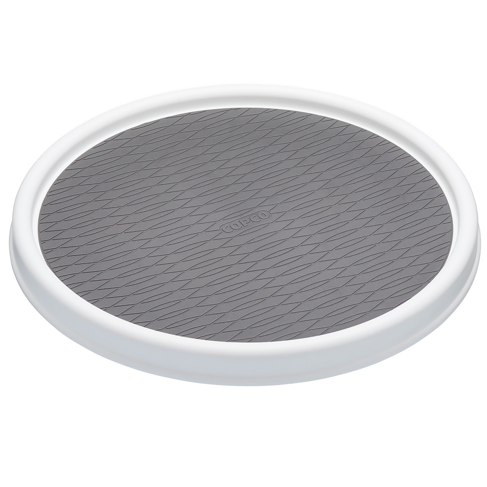 Ce Plateau tournant possède une surface striée et antidérapante ainsi qu'un rebord périphérique pour empêcher les petits contenants de tomber. Réalisé en plastique, il se nettoie facilement.