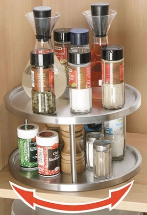 Le plateau tournant inox 2 étages permet d'obtenir un gain de place appréciable dans vos placards.