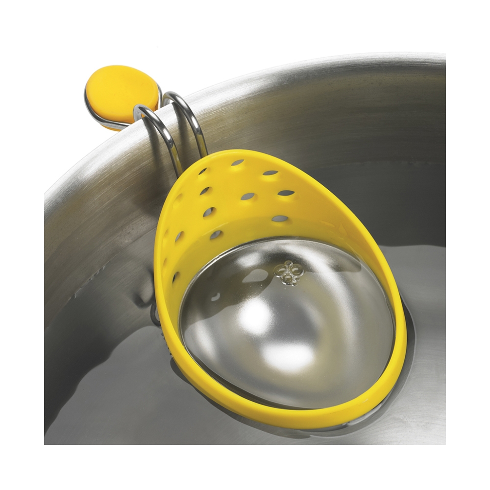 La Pocheuse à oeuf en acier inoxydable Cuisipro est conçue pour s'accrocher sur le rebord des casseroles afin de vous permettre de réaliser des oeufs pochés traditionnels. Le crochet de fixation s'adapte à la profondeur de la casserole. Il suffit de graisser légèrement la pocheuse puis de la fixer à la casserole. Versez ensuite de l'eau jusqu'au repère, ajoutez une goutte de vinaigre et faites bouillir. Cassez en suite un oeuf dans un ramequin et versez-le dans la pocheuse. Laissez cuire durant 5-6 minutes puis inclinez la pocheuse sur l'arrière pour laisser l'eau s'échapper. Et voili !