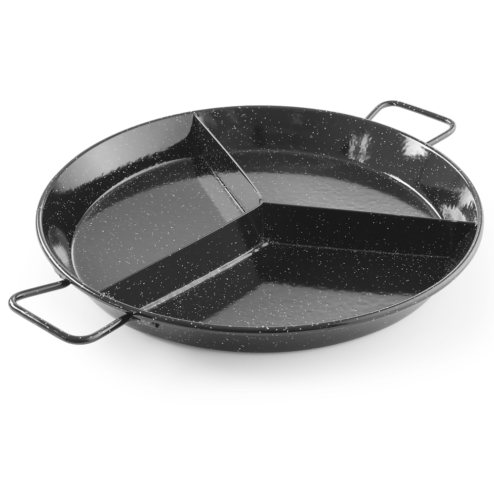 Les Poêles à Paella Hendi sont disponibles en 2 ou 3 compartiments pour préparer autant de plats différents en même temps. Fabriquées en tôle d'acier émaillée, donc assez léger, elles sont très facile à utiliser et surtout à nettoyer.