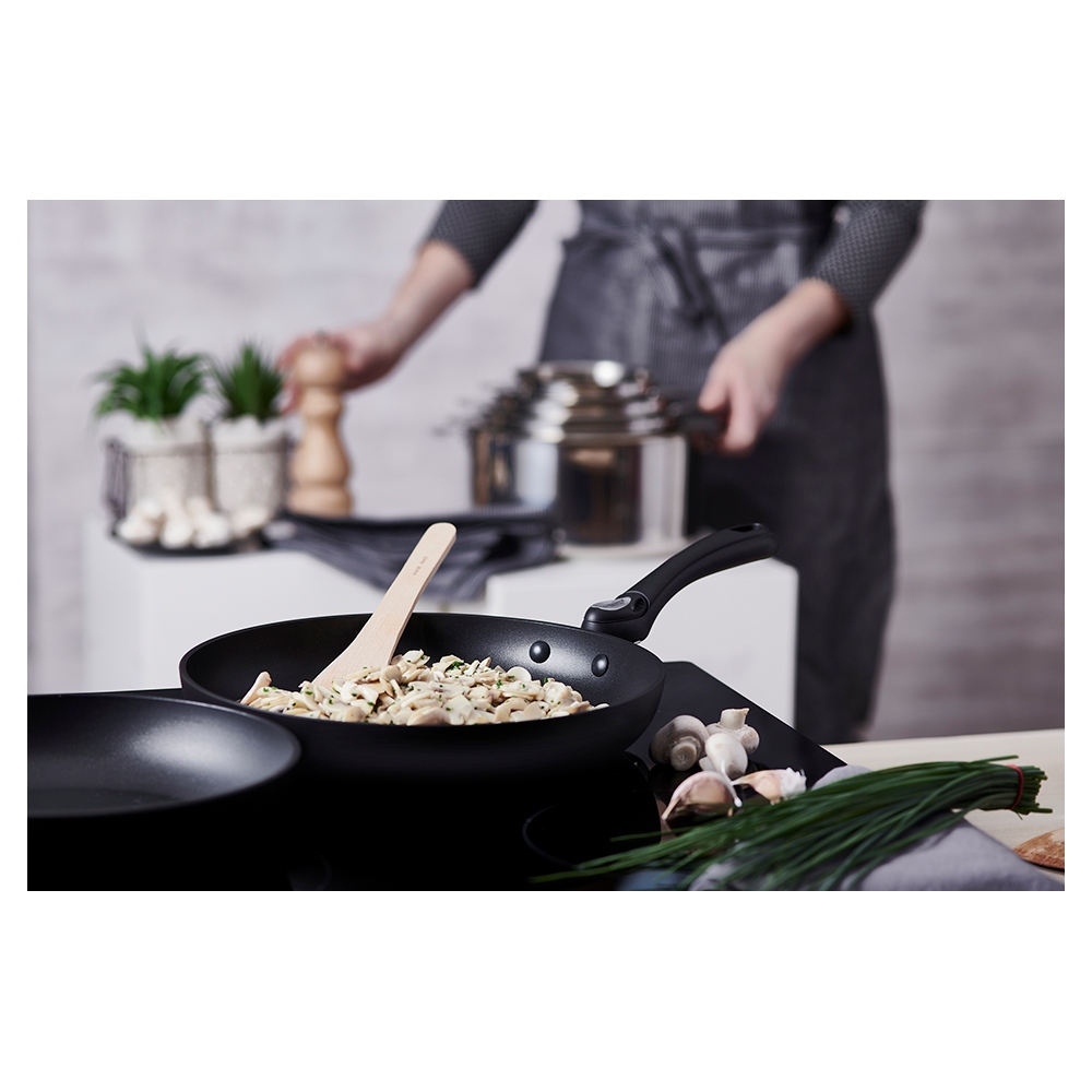 La Poêle Antiadhésive Choc Intense Amovible De Buyer vous séduira par sa polyvalence. Réalisée en aluminum forgé puis revêtue d'un antiadhésif haute durabilité pour plus de résistance, elle est compatible tous feux y compris induction et peut même aller au four !