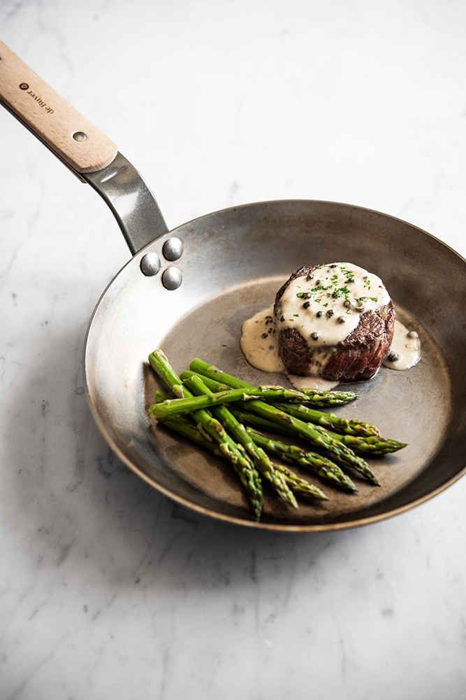 Issue de la rencontre des univers De Buyer et Marlux, les poêles B Bois Minéral Elément associent l'acier minéral au bois de hêtre provenant de forêts gérées durablement. Ces articles sont particulièrement destinés à la réalisation de cuissons à hautes températures, pour saisir, dorer et griller.