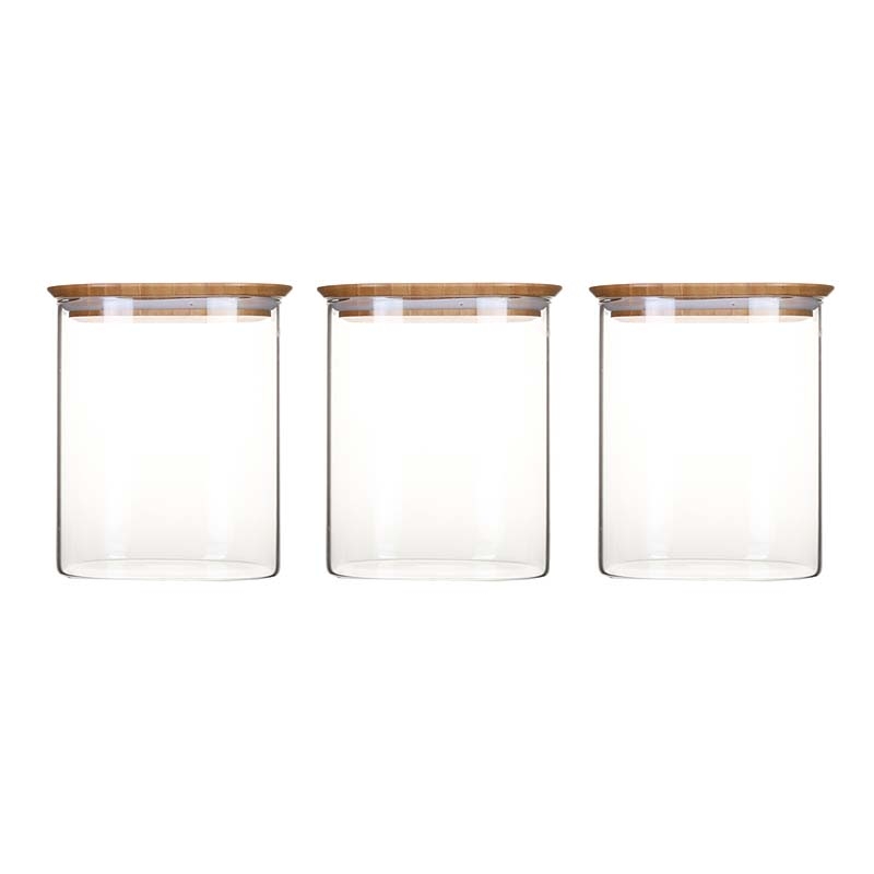 Set comprenant 3 pots ronds en verre borosilicate avec couvercle en bambou et joint silicone pour une fermeture hermétique. Parfaitement adaptés à la conservation des épices & condiments durablement et sainement tout en respectant les goûts et les saveurs. Garantis sans BPA, ces pots s'entretiennent facilement au lave-vaisselle (sans les couvercles).