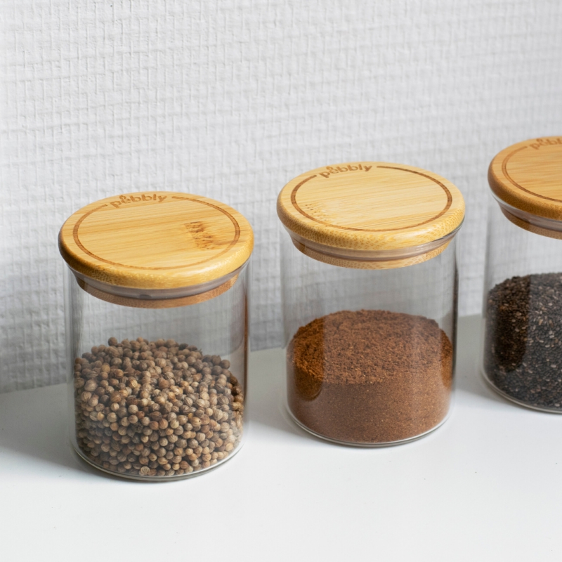 Descritif Pots à épices verre & couvercle Bambou Pebbly