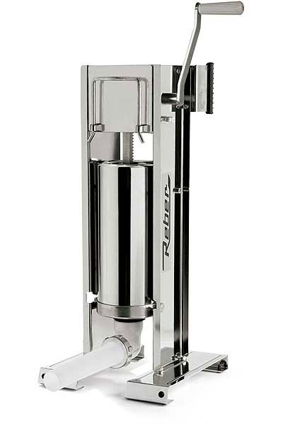 Le Poussoir à Saucisses Vertical Tout Inox Reber vous permettra de réussir à coup sûr vos saucisses, boudins sans effort grâce à son système de fonctionnement par crémaillère à poignée latérale et d'expulsion d'air automatique sans soupape.