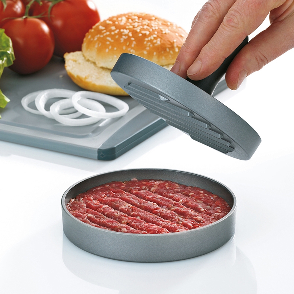 Grâce à la Presse à Hamburger Buffalo Kela réalisée en fonte d'aluminium revêtue antiadhésif, vous formerez facilement des galettes de viande hachée fraîches et épicées. Son revêtement anti-adhésif permet de sortir facilement la viande du moule pour la cuire.