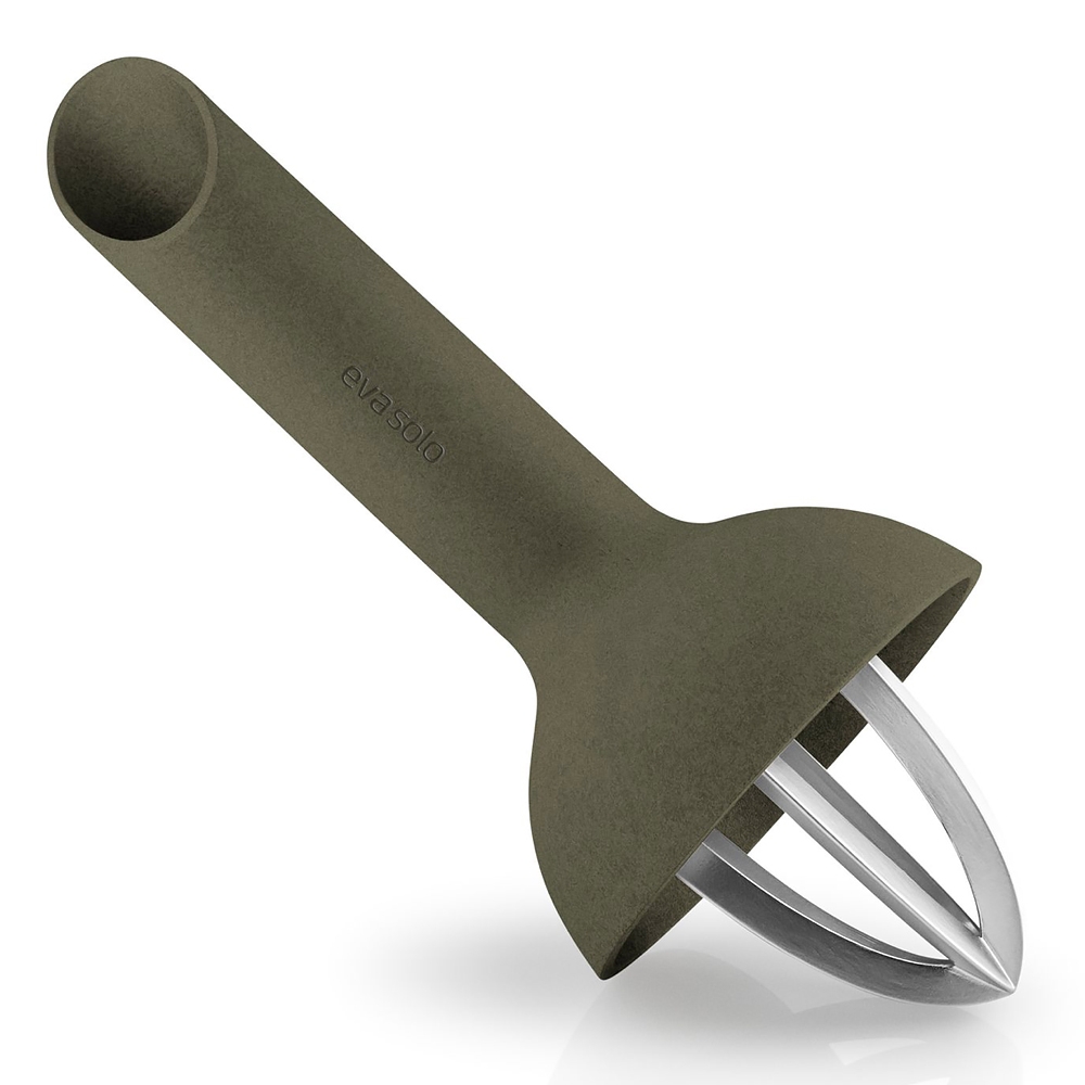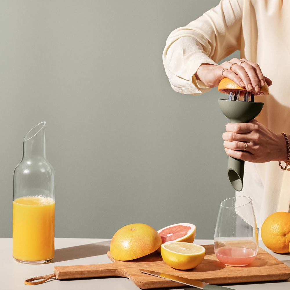 Presse Agrumes Green Tool Eva Solo, obtenez facilement des jus de citron, orange et pamplemousse. Oubliez le fonctionnement classique d'un presse agrumes manuel ! Avec le modèle Eva Solo, vos 2 mains servent pour presser le fruit. Efficacité redoutable ! Puis le jus s'écoule à travers le manche du presse agrumes pour atteindre la carafe ou le verre.