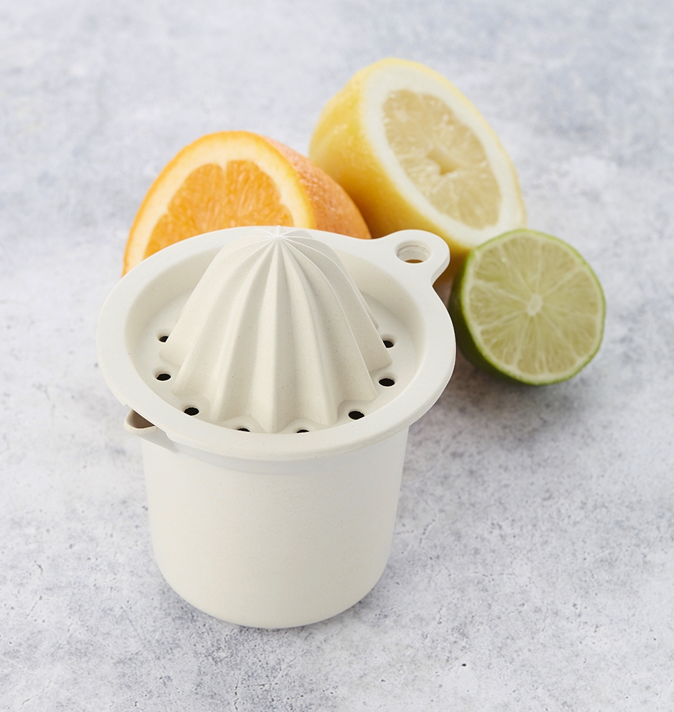 presse-agrumes Point Virgule est doté d'un réservoir intégré pouvant servir directement de tasse. Il est réalisé en bambou, matière végétale éco-responsable et biodégradable.