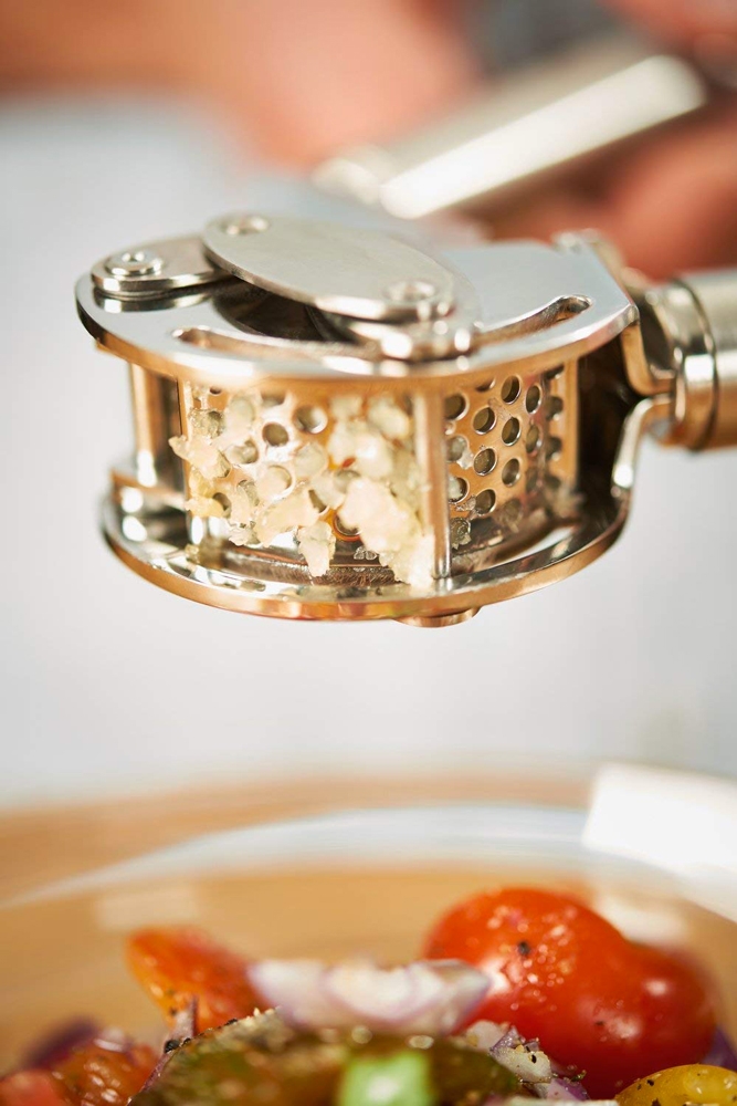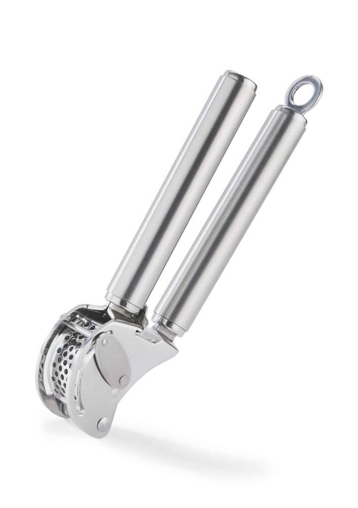 Le presse-ail Rösle est doté d'une grille amovible pour un nettoyage plus facile.