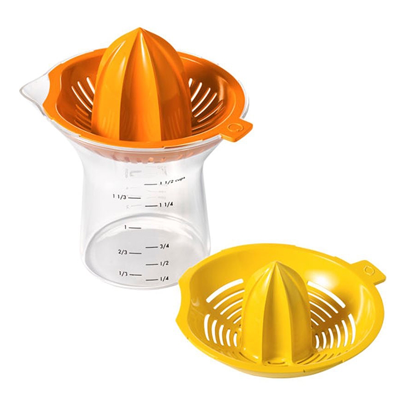 Idéal pour extraire de petites quantités de citron et d'orange. Il est fourni avec 2 cônes différents : un petit pour presser les citrons verts ou jaunes et un grand pour les oranges. Les éléments se démontent facilement rendant le nettoyage facile puis s'emboîtent pour un rangement compact.