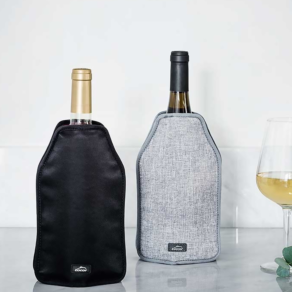 Le Rafraîchisseur à bouteille Lacor est une housse thermique permettant de refroidir et de maintenir à une température idéale les bouteilles de vins pendant 2 heures... De taille universelle, cette housse s'adapte parfaitement à toutes les bouteilles grâce à ses côtés élastiques. Il suffit de la placer au congélateur an moins 5 heures avant utilisation. Le nettoyage s'effectue à l'aide d'un chiffon humide. (ne pas laver en machine)