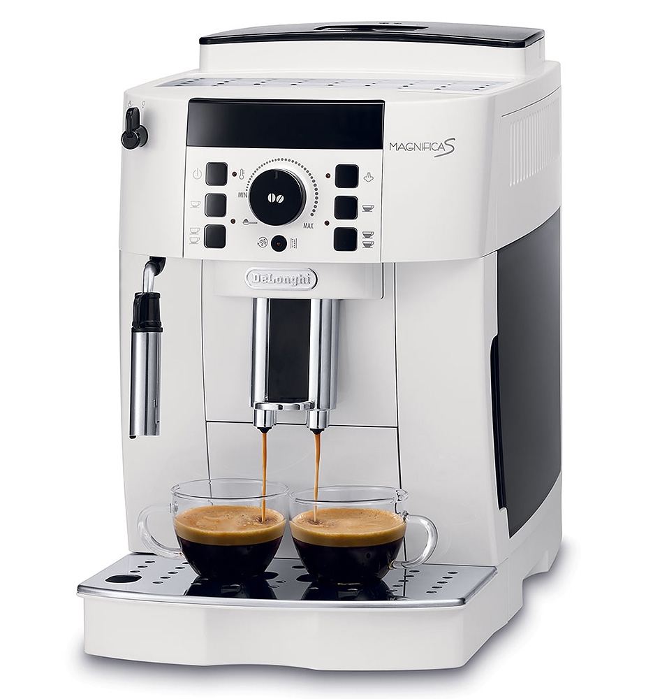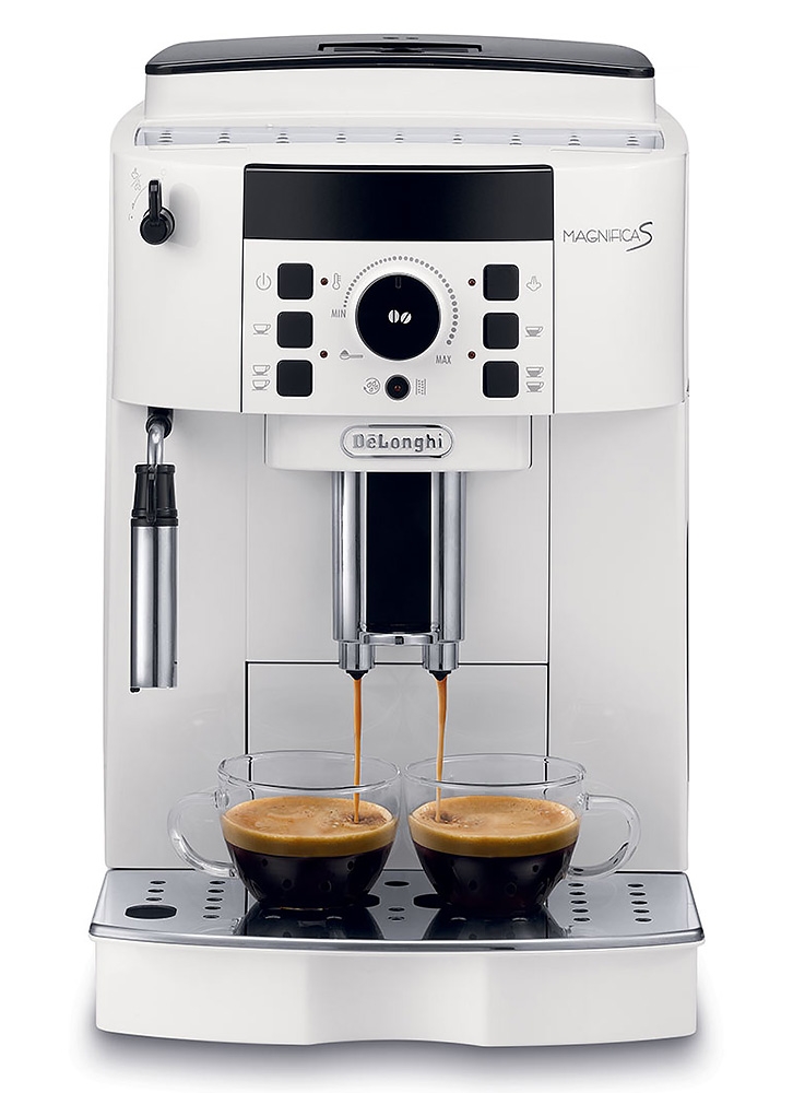 l'avantage principal du Robot Café Magnifica S Premium ECAM 21117.W DeLonghi réside dans sa faculté de moudre le café juste au moment de la préparation pour garantir une fraîcheur optimale à votre café. Un café fraîchement moulu est la promesse de la restitution de tous les arômes de votre café. Le Robot Café Magnifica S Premium ECAM 21117.W DeLonghi vous permettra de réaliser deux tasses simultanément grâce à un simple bouton, d'y incorporer une mousse onctueuse grâce à l'émultionneur de lait manuel réglable et bien d'autres choses encore.
