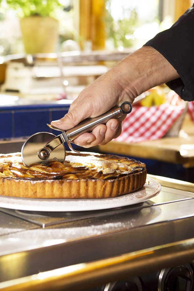 Inox 18/10. Longueur 19,5 cm. ø 7 cm. Roulette affûtée. Anneau pour suspendre. Va au lave vaisselle. Garantie à vie.