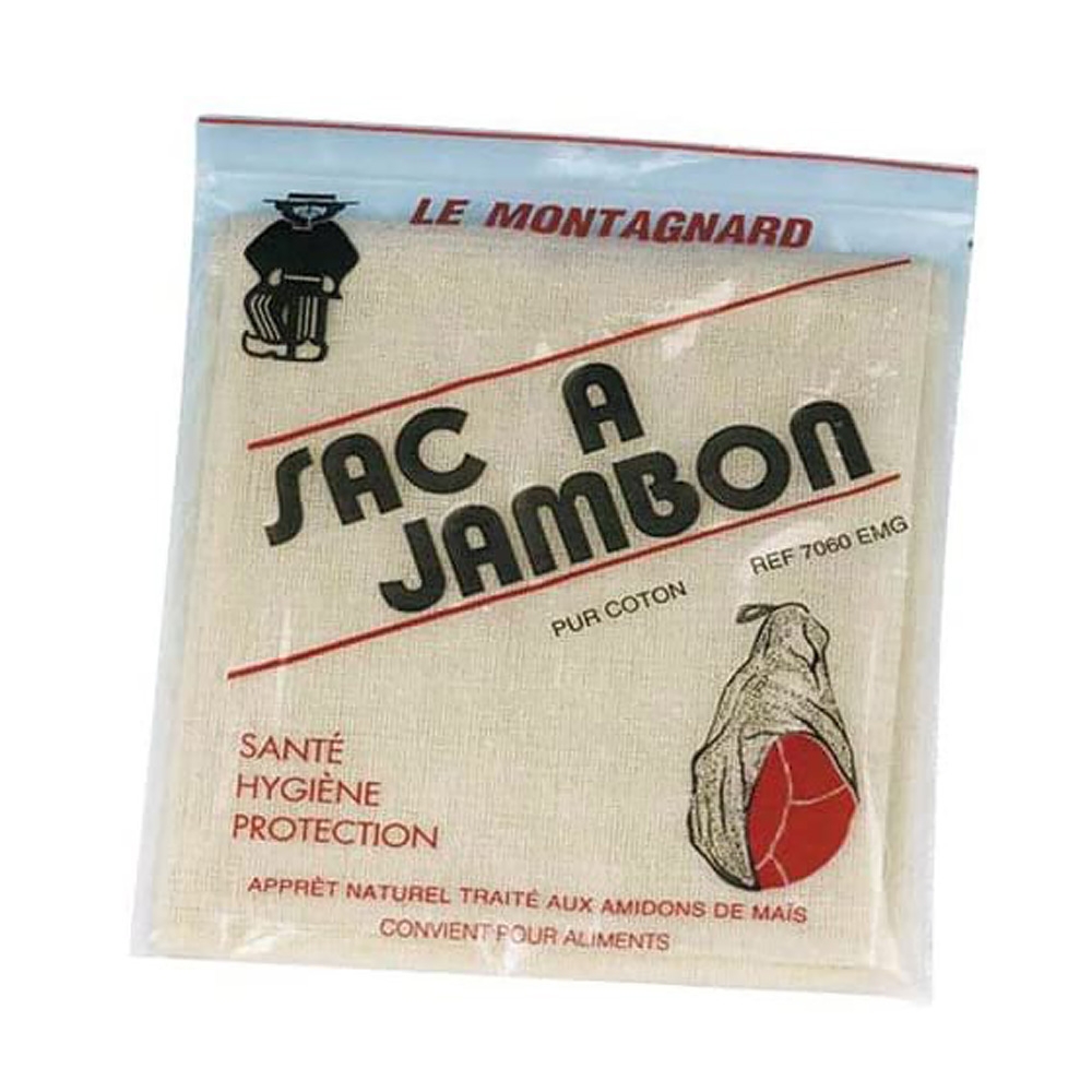 Le Sac à jambon Le Montagnard est fabriqué en France dans une singalette à base de coton et apprêté à la fécule d'amidon vous permettra de conserver vos jambons de façon hygiénique en les laissant respirer et en les maintenant à l'abri des insectes.