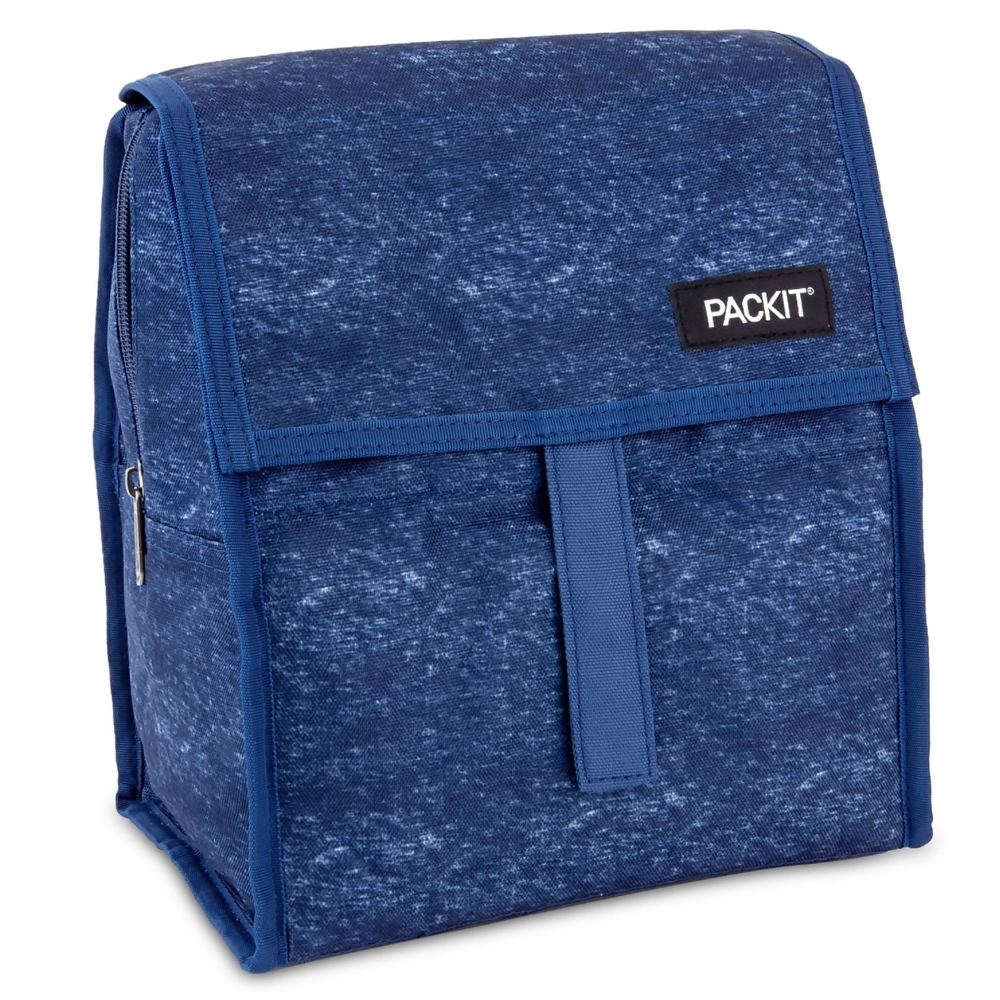 Packit est un sac réfrigérant pliable qui conserve vos repas, encas et boissons au frais jusqu’à 10 heures ! Son gel réfrigérant situé dans la doublure du sac enveloppe vos aliments à 360°C. Fini maintenant les blocs de glace encombrants qui ne durent que 2 heures et fini l’humidité ! Vos aliments restent frais et sains. Pliez et laissez 12 heures au congélateur et c'est parti !