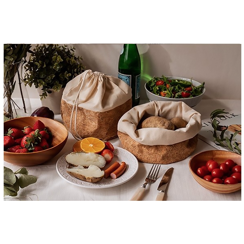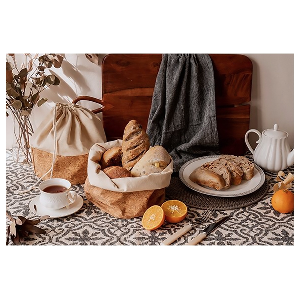 Elle est fabriquée en coton et liège, des matériaux naturellement respirants et anti-moisissures. De plus la Corbeille et sac à pain 2 en 1 Nuts est munie d'un cordon de serrage qui permet de la fermer. Facile à vivre, le produit peut être lavé à la main. 3 tailles vous sont proposées : 16 cm, 20 cm ou 24 cm.