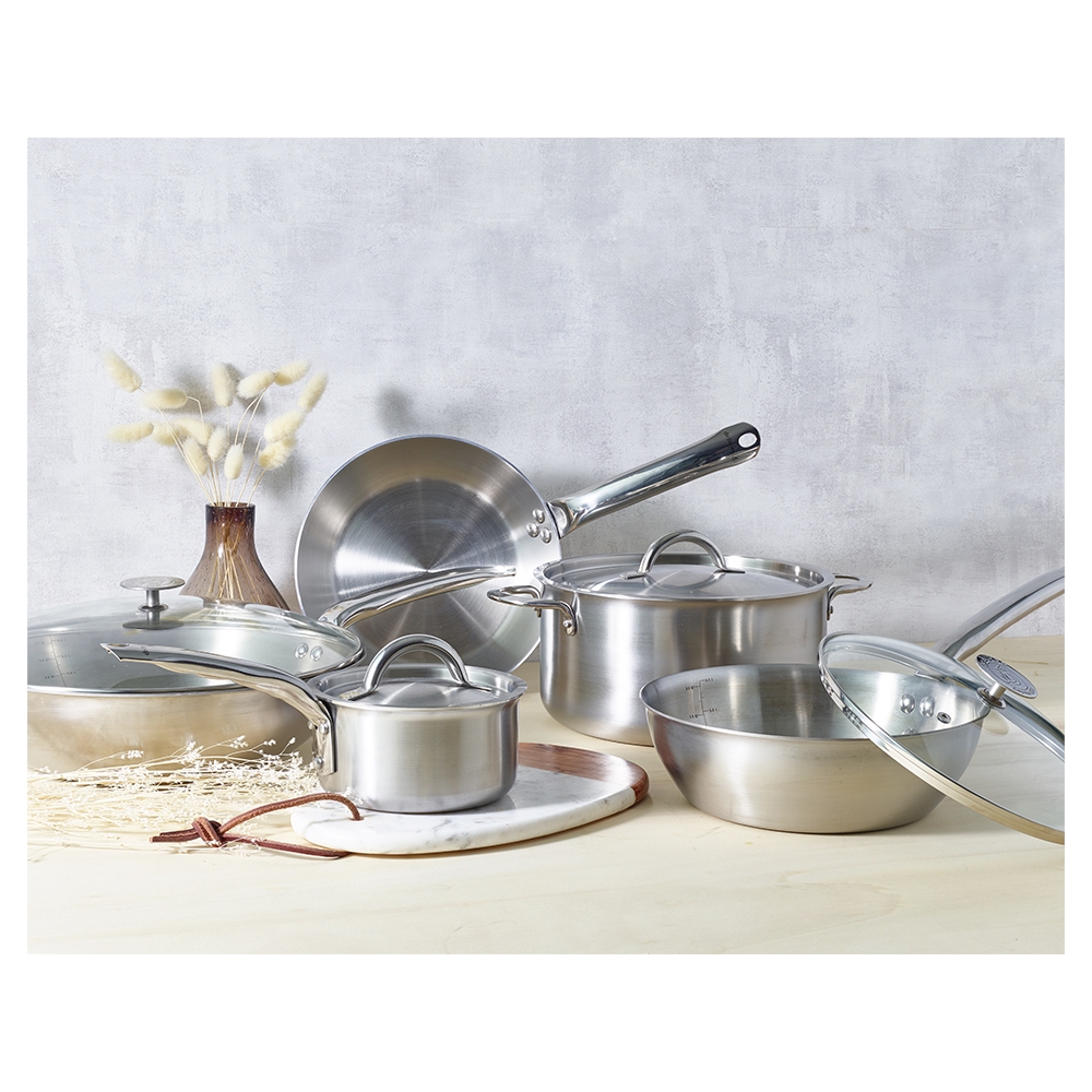 Les sauteuses à queue bord droit de la gamme Alchimy De Buyer sont réalisées en acier inoxydable multicouche (inox/alu/inox) afin de permettre une utilisation sur tous types de feux y compris l'induction et le four. Elles offrent une répartition homogène de la chaleur permettant une parfaite maîtrise de la cuisson et une économie d'énergie. Elles sont parfaites pour faire revenir les aliments rapidement. La forme des sauteuses assure une bonne évacuation de l'humidité et garantit ainsi une excellente caramélisation des sucs. Pourvues de graduations intérieures et d'un bord verseur, elles possèdent également une queue en tube d'inox étanche, courbée à la française et solidement fixée par rivets. Très belle finition en acier poli brossé. Fabrication française.
