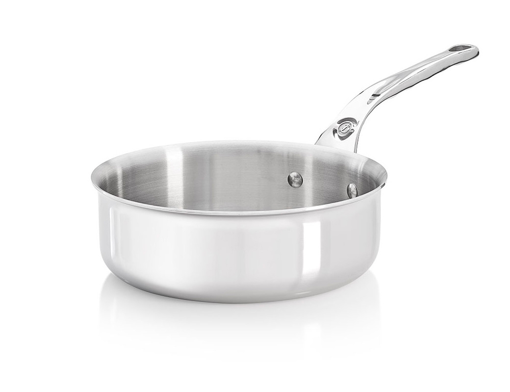 La sauteuse inox Affinity De Buyer est moulée d’une seule pièce à partir d’un alliage 5 couches inox/aluminium, elle n’a donc pas de fond rapporté.