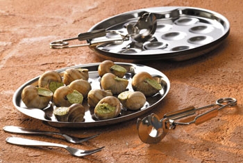 4 assiettes inox 12 escargots. Ø 19 cm.