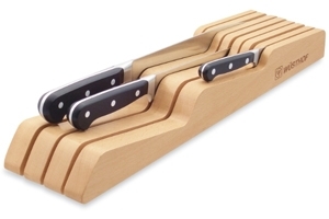 Le porte-couteaux Wüsthof permet de ranger jusqu'à 7 couteaux (4 petits + 3 grands). Vos couteaus peuvent ainsi être rangés dans un tiroir (encombrement réduit) tout en protégeant efficacement leurs lames.