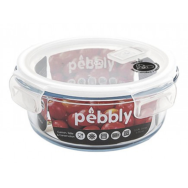 Descriptif Set de 3 Boîtes rondes verre borosilicate Pebbly