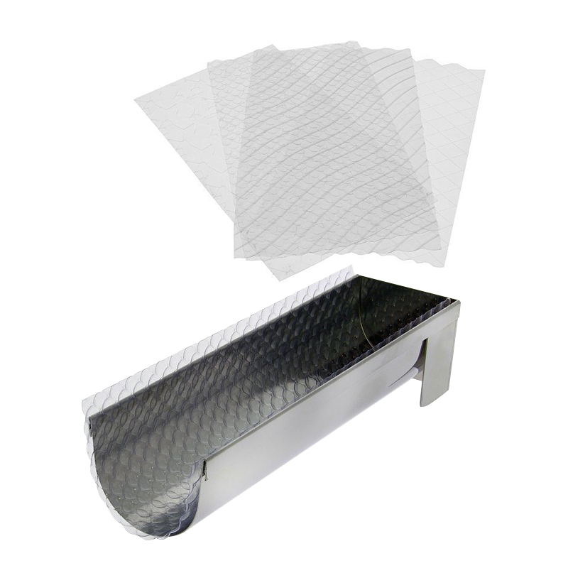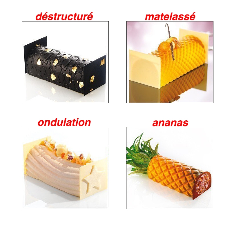 Le Set de 4 Inserts Décor Bûche De Buyer comprend 4 feuilles en plastique souple à placer dans un moule à bûche ou au fond d'un cadre pour obtenir un effet de matière personnalisant les créations lors du démoulage des entremets et des bûches. Ce set convient aussi parfaitement pour les crèmes, mousses, glaces et chocolat. Les feuilles se lavent à la main et ne sont pas compatibles four.