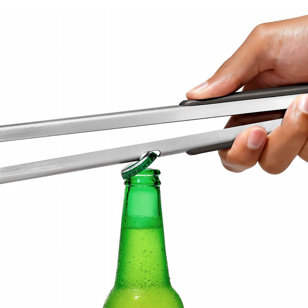 Le Set Pince & Spatule Barbecue Oxo sera le partenaire idéal de tous vos barbecues. La spatule a une longueur de 45 cm dont la palette ajourée de 9,5 cm de large est biseautée pour s'insérer facilement sous les pièces de viandes, poissons, légumes ...sans les abîmer. La pince de service mesure 47 cm et son extrémité en forme de coquille offre une adhérence et une tenue parfaite de la viande. Elle saisit la viande sans l'écraser et possède un décapsuleur très pratique sur le manche. Les deux ustensiles possèdent un anneau de suspension et sont compatibles lave-vaisselle.