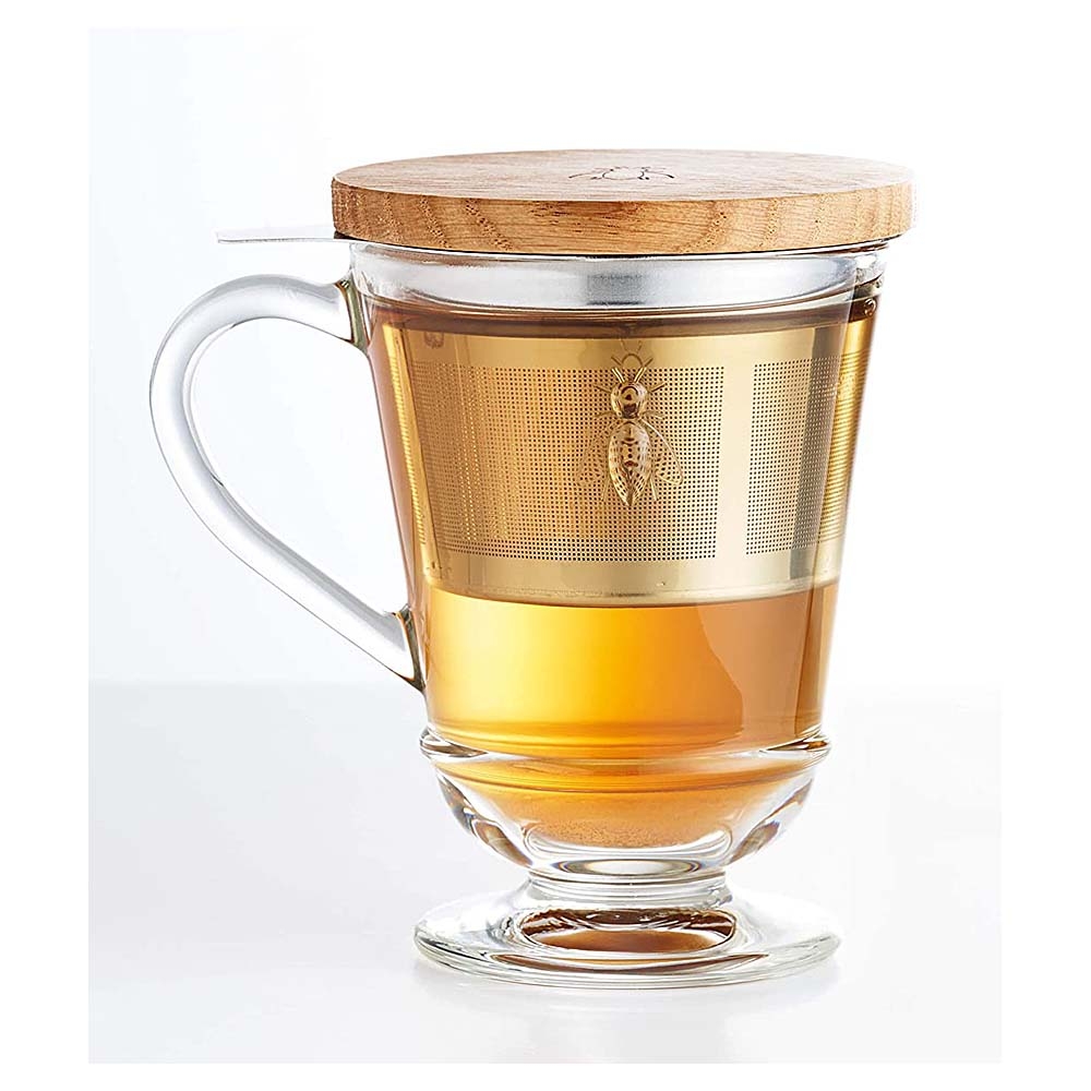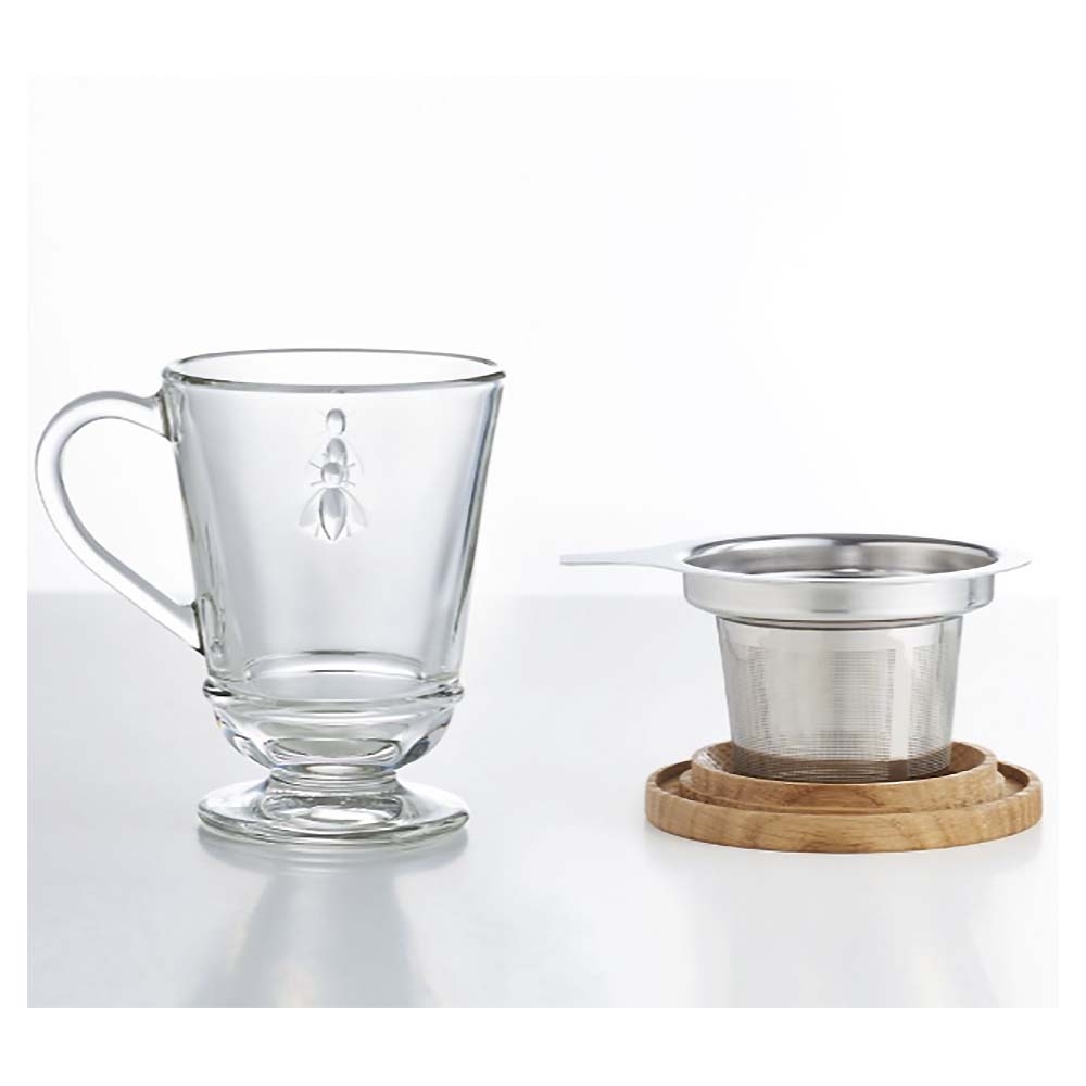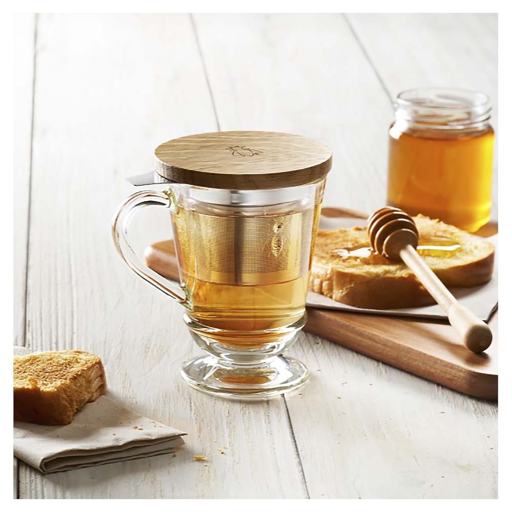 Le Set Tisanière Abeille La Rochère est indispensable à tous les amateurs de thés, tisanes, rooibos etc...Très élégant avec son abeille gravée dans le verre il possède un large filtre en acier inoxydable pour permettre aux feuilles d'infuser parfaitement afin de révéler tous leurs arômes. Son couvercle en bois massif est issu de forêts gérées durablement.