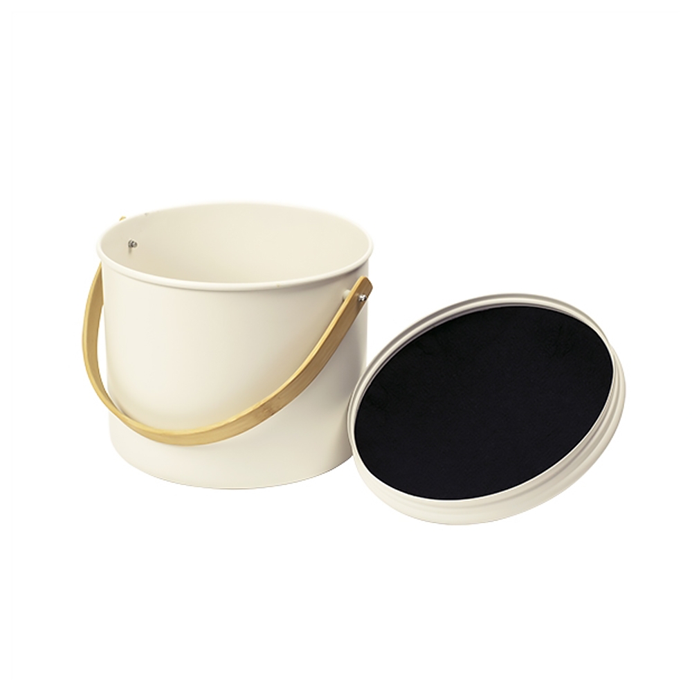 - seau en métal & bambou avec poignée. (4,5 litres : 18 x 25 cm)