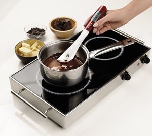 Spatule thermomètre compatible induction livrée avec embout spatule plus un embout supplémentaire cuillère. De - 50°c à + 300°c. Pile type bouton LR 44.