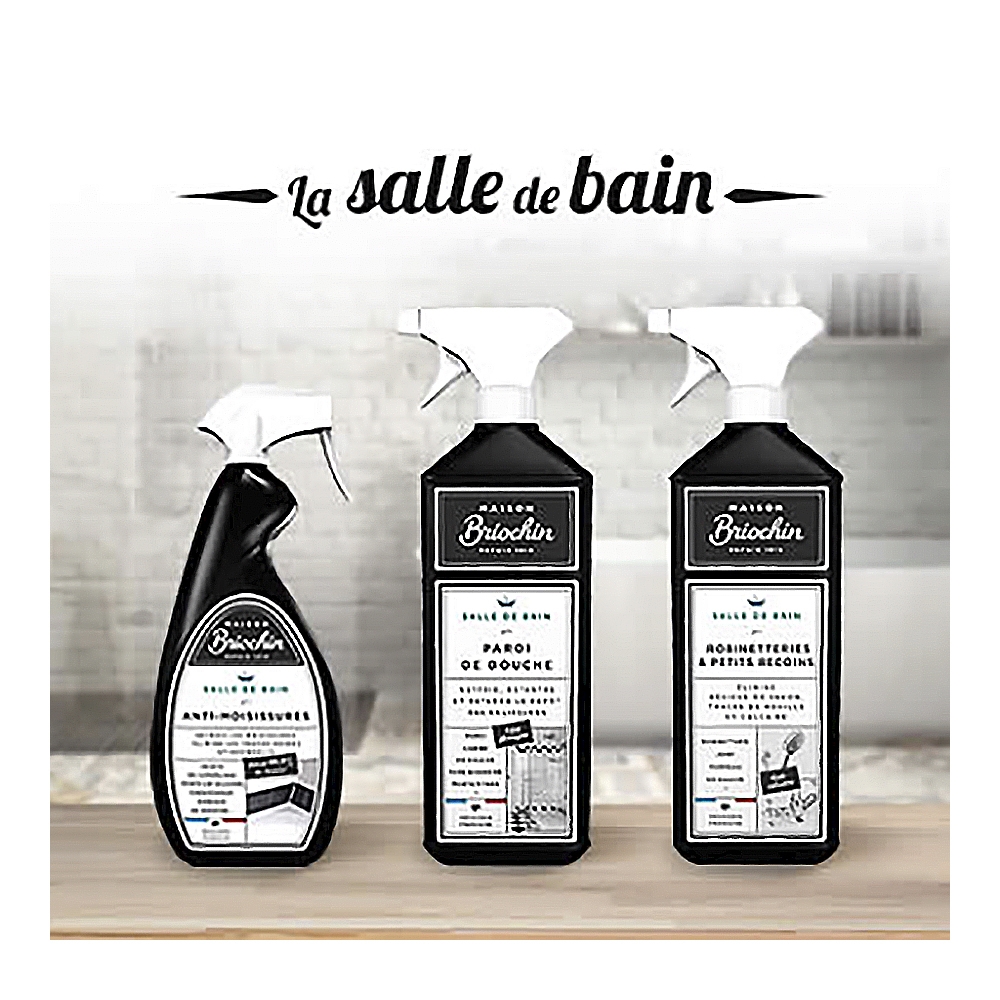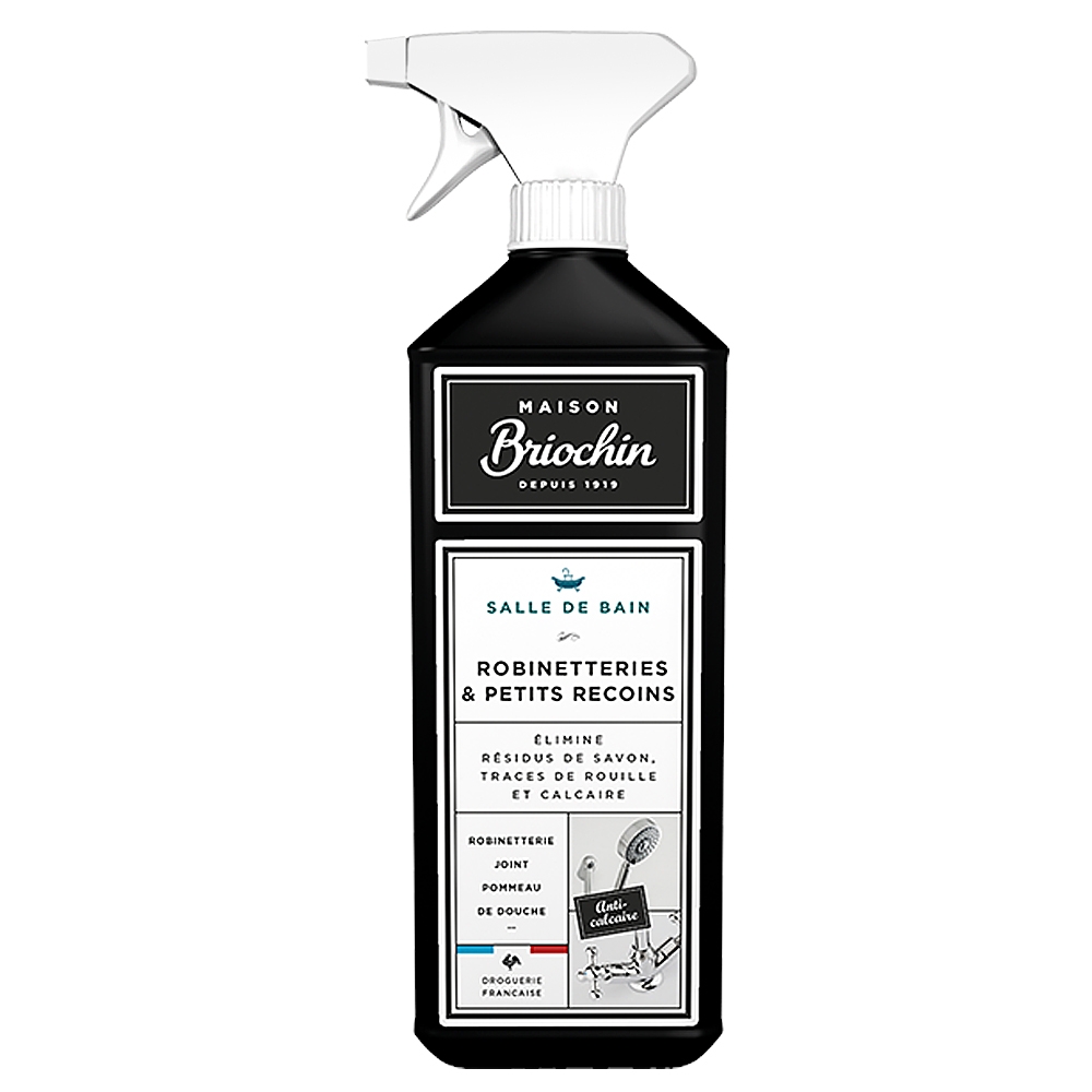 Le Spray Nettoyant Robinetterie et Petits Recoins 750ml Briochin élimine les incrustations de calcaire, supprime les résidus de savon et traces de rouille tout en combattant les salissures les plus tenaces. Son efficacité est garantie sur toutes les surfaces de la salle de bain.