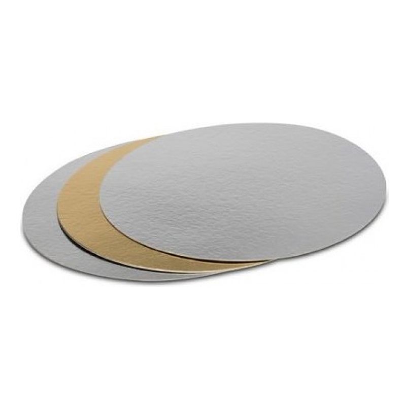 lot de 3 supports de présentation pâtisseries réversible et jetable ( doré / argenté ) de 30 cm de diamètre.