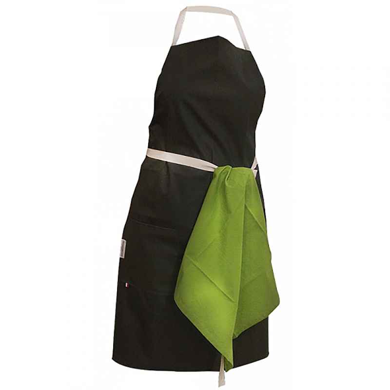 De fabrication artisanale et Française, les tabliers de cuisine Sacasalades sont réalisés en coton dont une face est enduite. De taille unique, ils possèdent un long cordon de 3,5 m coulissant pour ajuster le tablier, une fermeture sur le devant permettant dy accrocher la serviette en coton fournie ainsi qu'une poche latérale droite et basse. Ils se lavent en machine à 30°C sans essorage.