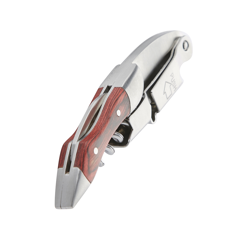 Débouchez une bonne bouteille grâce à cet élégant Tire-bouchon Sommelier réalisé en acier inoxydable habillé de bois rouge. Pliable pour être facilement rangé.