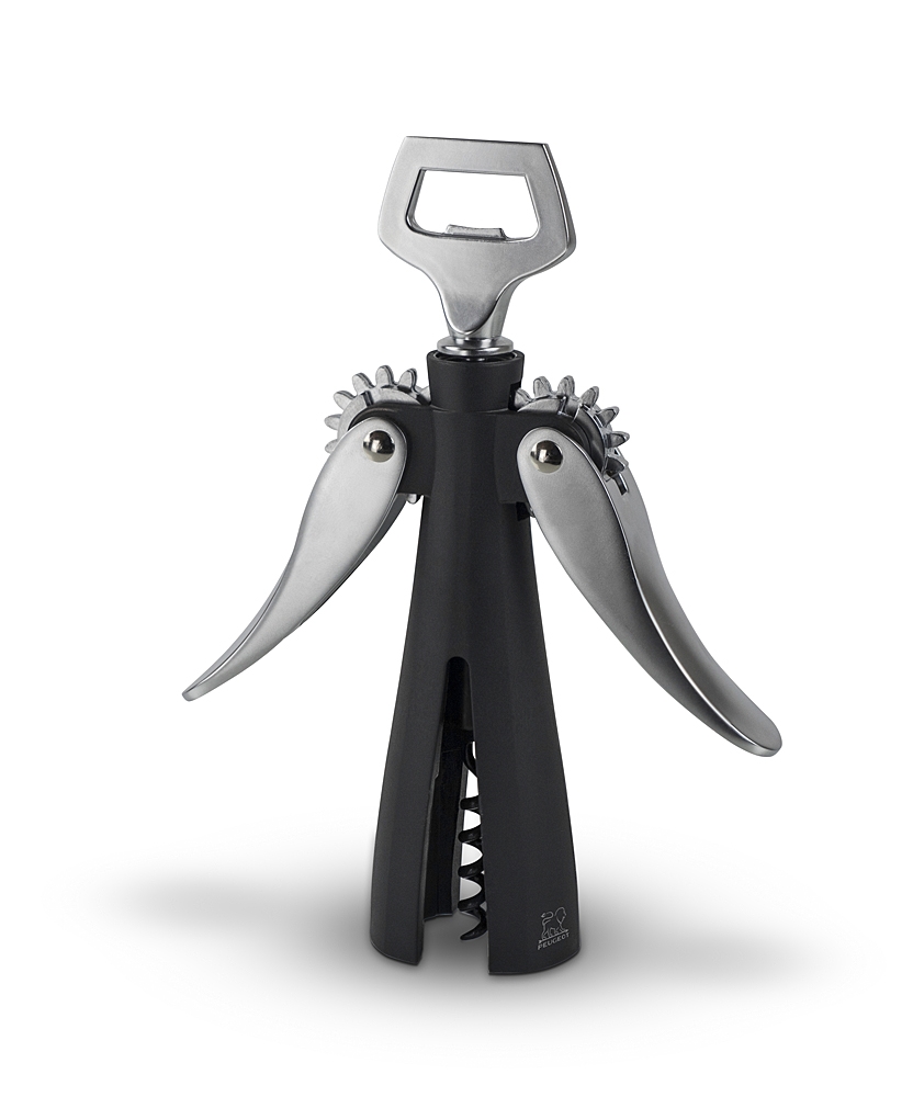 Le Tire-Bouchon Souverain Peugeot est équipé d'un système breveté permettant de visser la vrille dans le bouchon tout en maintenant les bras en place le long du corps. Ceci améliore considérablement la prise en main et facilite l'ouverture de la bouteille. Le dévissage est sécurisé par un système permettant de bloquer le bouchon puis de le faire tomber sans avoir à le toucher.