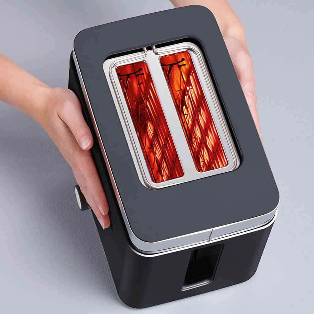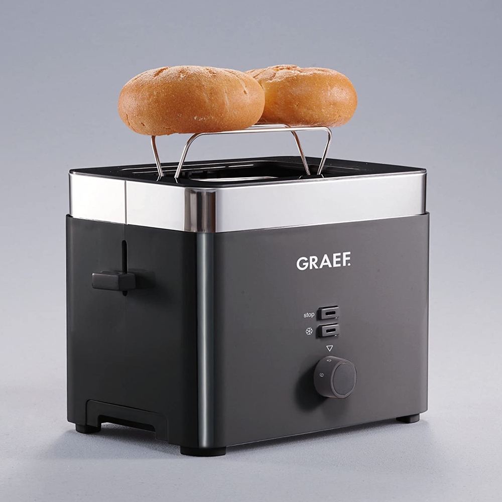 Le Toaster TO60 Graef dore vos tranches de pain y compris les gros sandwichs américains en un rien de temps pour bien commencer la journée (mais pas que...) Il dore également les petits pains grâce à un astucieux système intégré. Il est doté d'un boitier isotherme pour plus de sécurité ainsi que d'un bouton d'arrêt et d'un centrage automatique de la tranche de pain. Un bouton rotatif permet de sélectionner le brunissement souhaité et ce toaster offre une fonction décongélation ainsi qu'un tiroir ramasse-miettes.