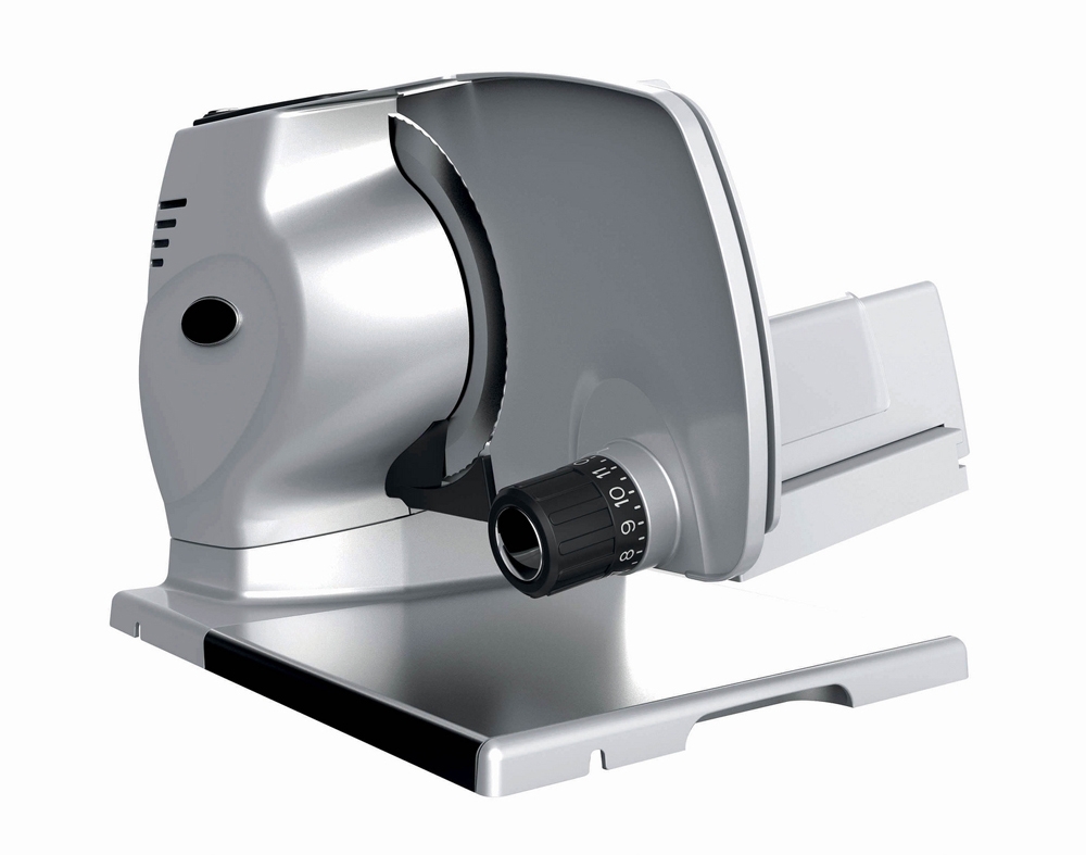 Vitesse de rotation 120 tr/mn. Puissance 150 W. Lame en acier inoxydable Ø 19 cm. Chariot extra-large 20 cm. Réglage de l’épaisseur de coupe de 0 à 2,8 cm. Plateau récupérateur en inox. Guide pour petits produits. Pieds anti-dérapants. Facile à nettoyer. Dim. H 28,5 x L 39,5 x P 28 cm. Garantie 3 ans.
