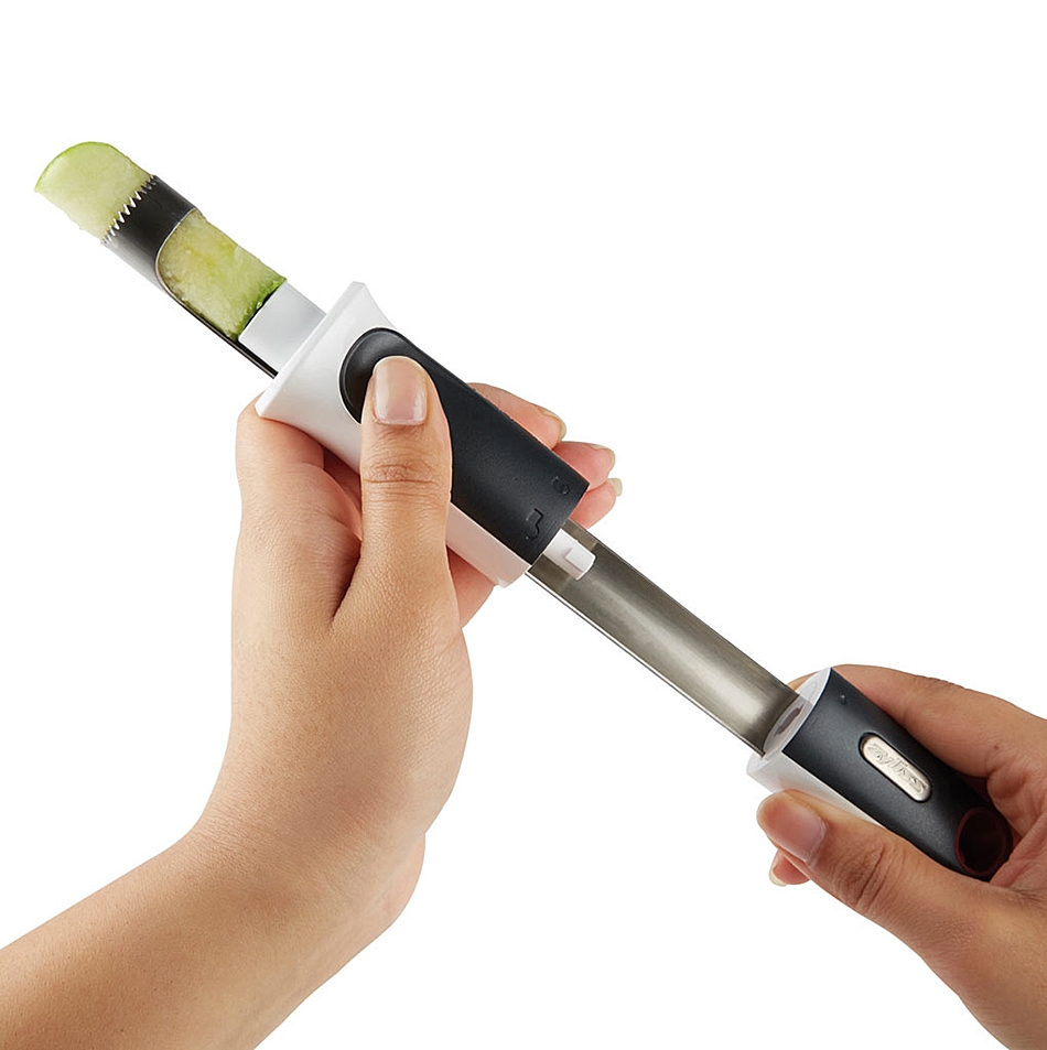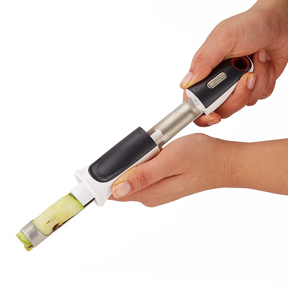 Le Vide Pomme Zyliss est parfaitement adapté pour retirer le coeur des pommes. Très simple d'utilisation, il est d'une efficacité redoutable. Ultra pratique, son manche pivote et glisse vers l'avant pour vider le coeur. Se nettoyant facilement au lave-vaisselle, il est de plus garanti 5 ans.