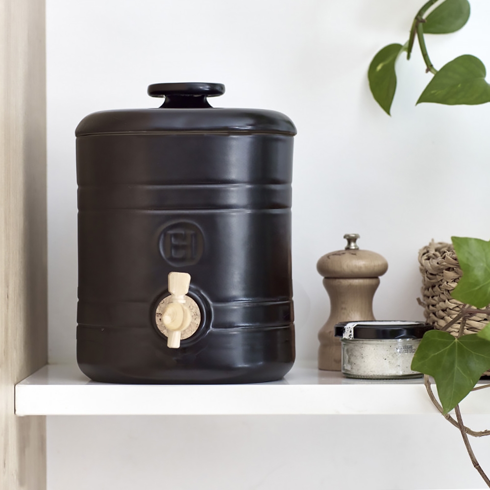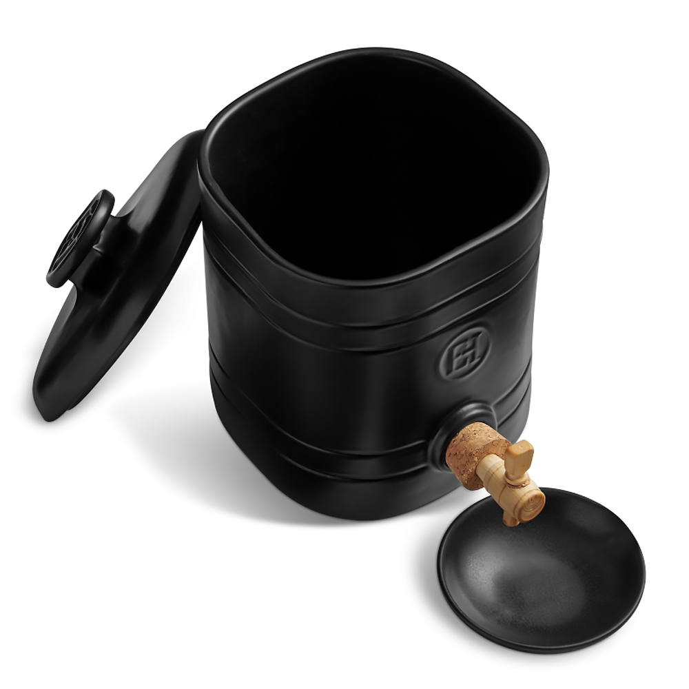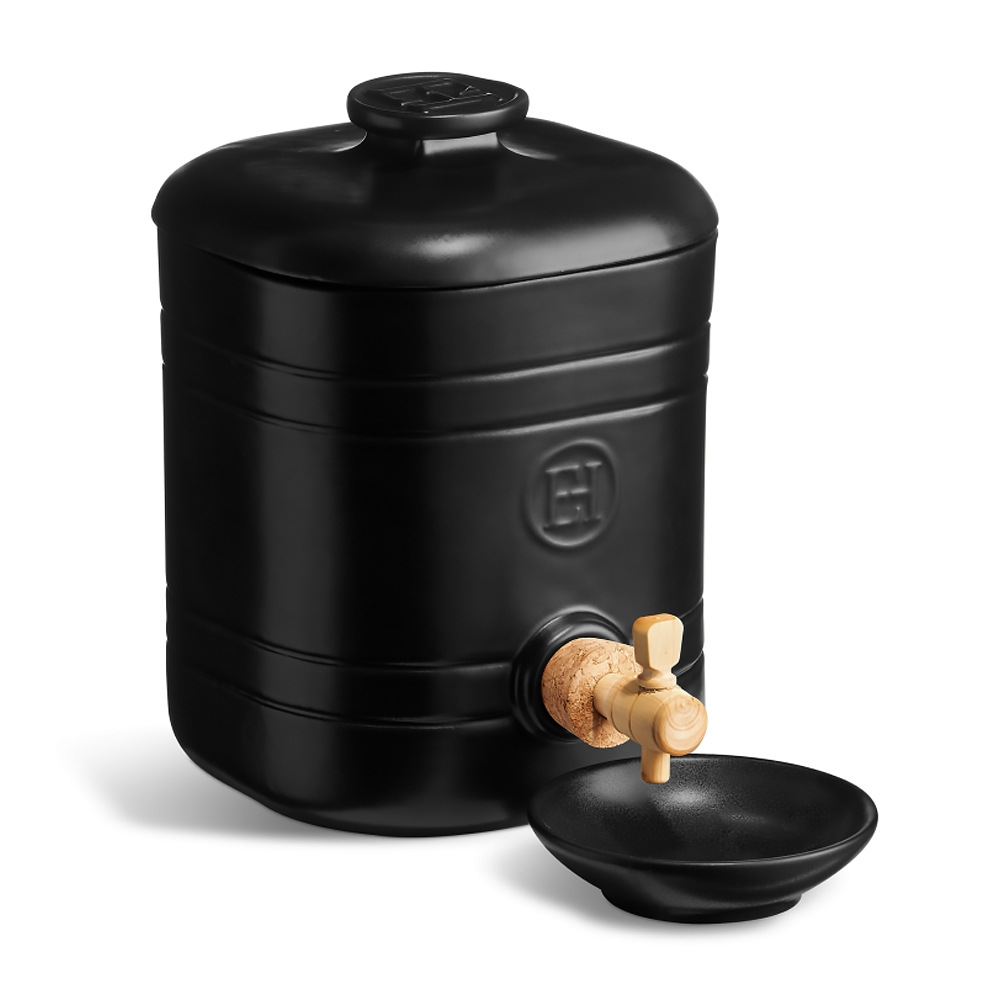 Quoi de plus simple que de faire son propre vinaigre avec le Vinaigrier Emile Henry réalisé en céramique émaillé résistant à l'acidité. Il suffit d'y placer une mère de vinaigre et de l'alimenter avec des fonds de bouteilles de vin pour pouvoir déguster votre vinaigre en quelques semaines. Le Vinaigrier Emile Henry possède un couvercle amovible pour le remplir et accéder à la mère facilement, un robinet en bois monté sur un bouchon en liège et une coupelle de 10 cm de diamètre pour recueillir la juste dose de vinaigre nécessaire à votre préparation. Le vinaigrier, le couvercle et la coupelle se nettoient facilement au lave-vaisselle.
